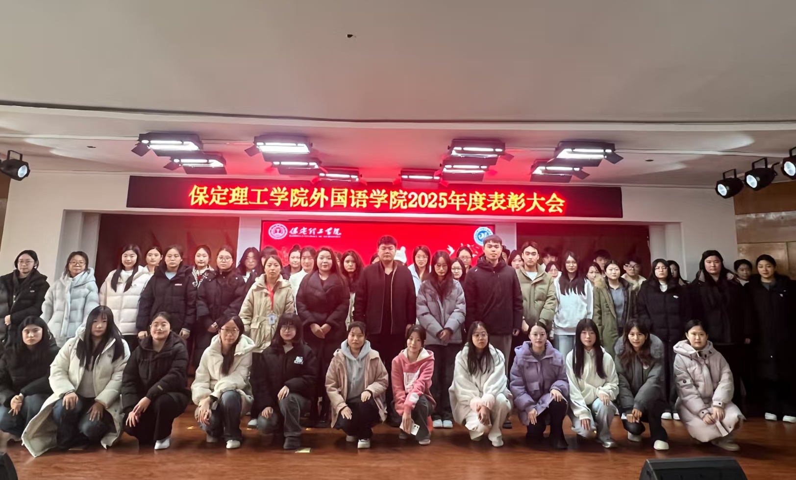 为表彰先进典型、凝聚奋进力量,近日,保定理工学院外国语学院“表彰先进,砥砺前行”2025年度表彰大会隆重举行。学院学工副院长李宗帅、学生党支部书记苏侠飞、团总支书记张紫璇及全体辅导员出席大会,与全院学子齐